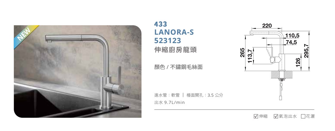 進口伸縮廚房龍頭 435-LANORA-S-523123