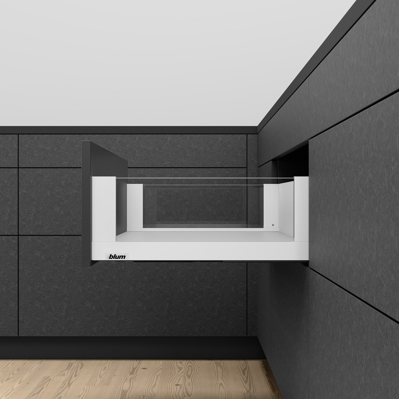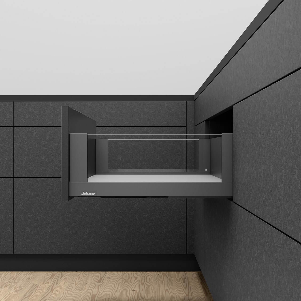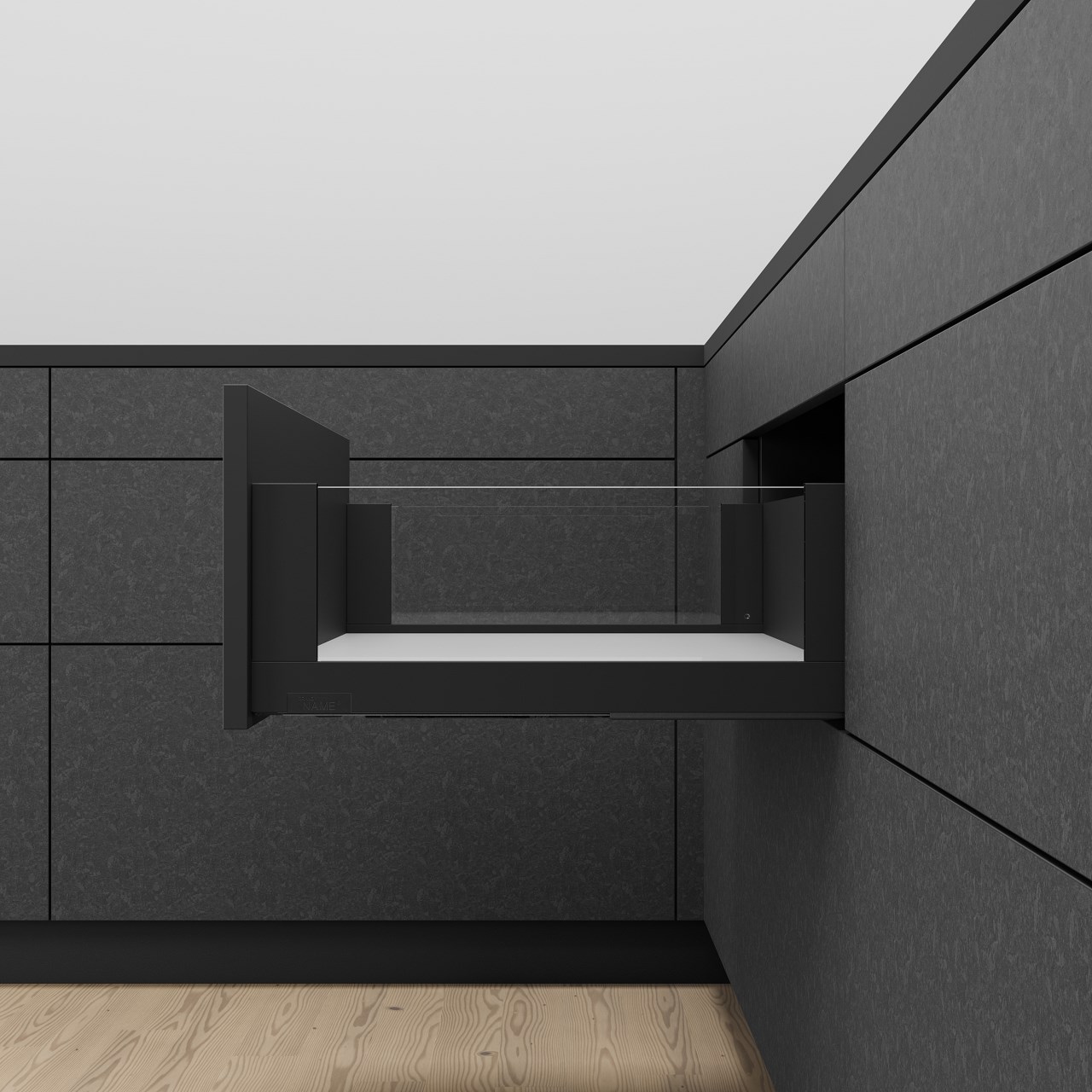 作為一種設計元素,高面板越來越重要。為了迎合這種設計趨勢,LEGRABOX 超薄麗拉金屬抽屜系列,新的面板固定件,確保抽屜開合過程中的穩定性。