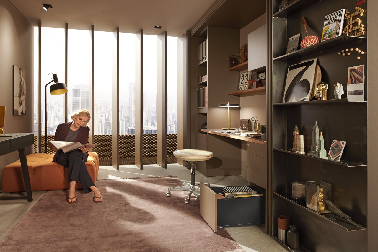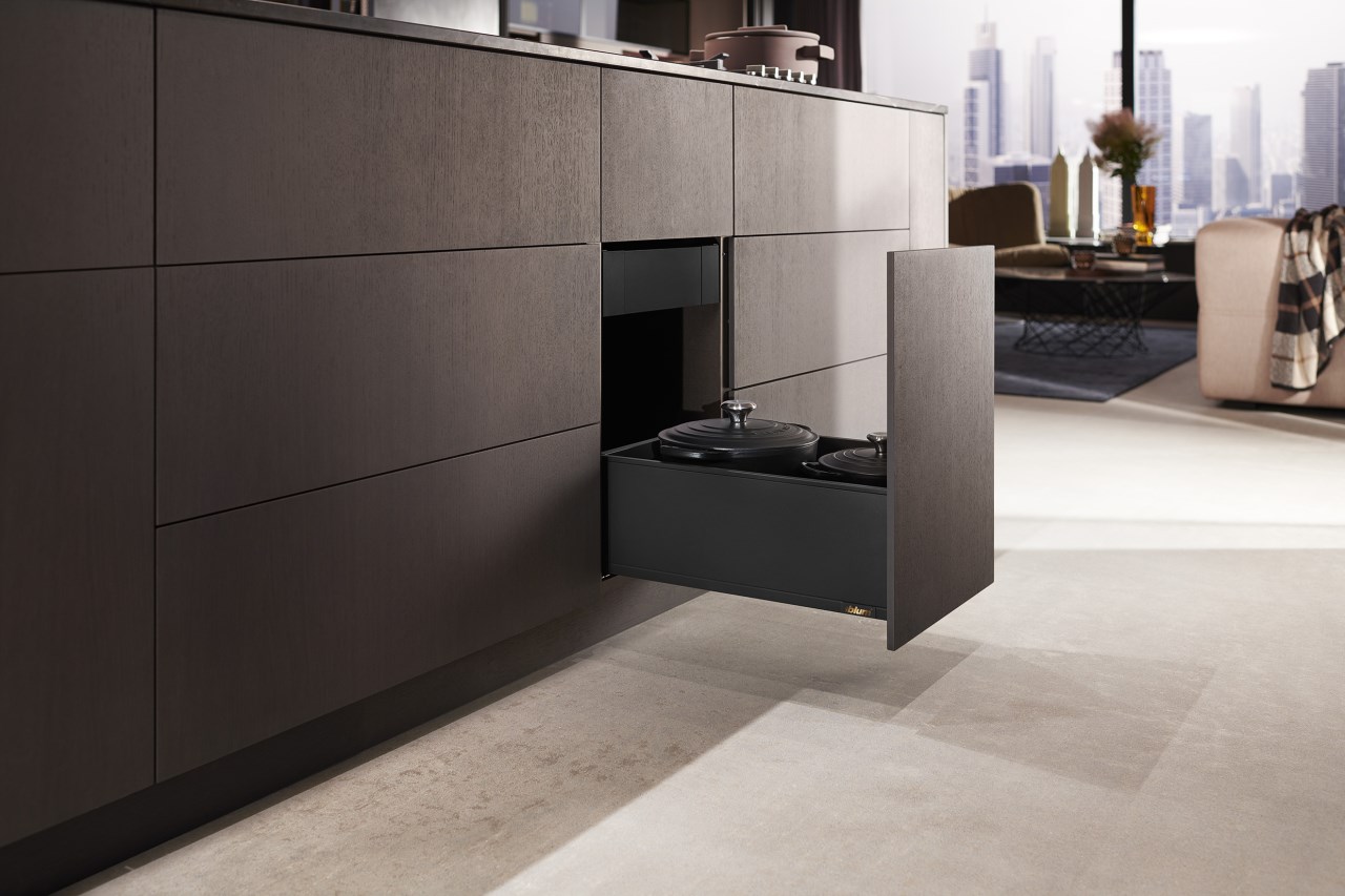 作為一種設計元素,高面板越來越重要。為了迎合這種設計趨勢,LEGRABOX 超薄麗拉金屬抽屜系列,新的面板固定件,確保抽屜開合過程中的穩定性。