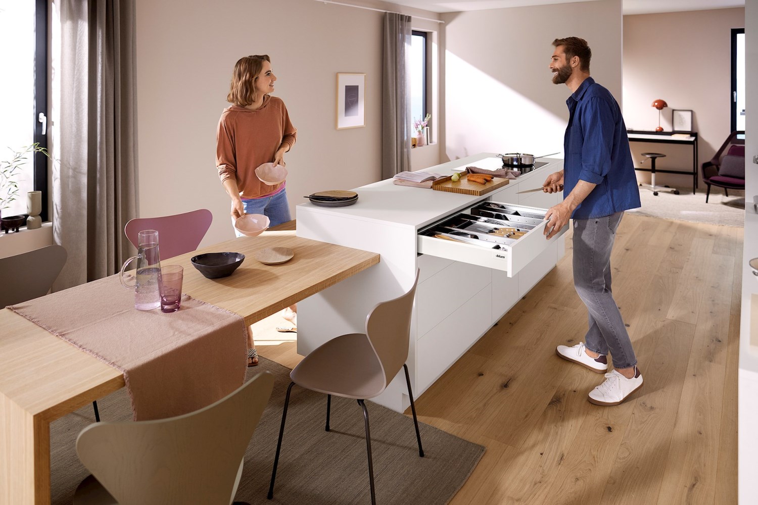 無論是搭配直桿還是加高側牆的抽屜,TANDEMBOX antaro 方桿金屬抽系列代表的是一種明朗、稜角分明的外觀風格。所有零件在顏色上是互相匹配的,意在突出純粹的產品設計風格。豪華金屬方桿抽屜的滑軌同樣是搭配BLUMOTION 緩衝阻尼,抽屜拉開時,滑順平穩,抽屜關閉時,輕柔緩衝安靜。使用壽命長,經過十萬次以上的開合耐用測試。不僅外型時尚美觀,更具實用性。