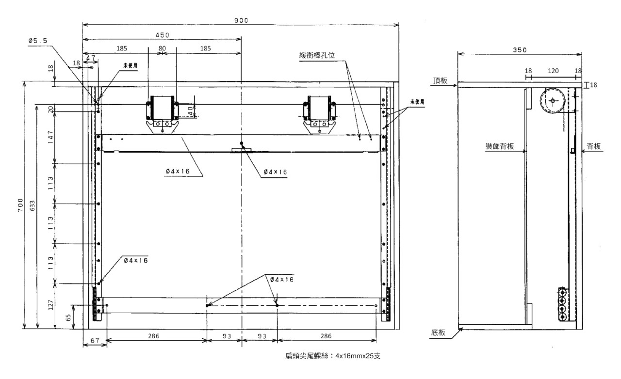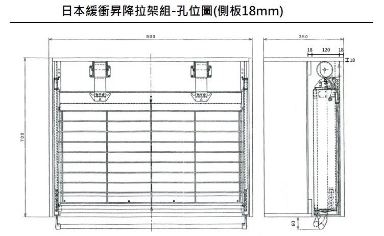 適用於90公分的櫃體,附5種掛架(保鮮膜盒架、味料架、湯勺掛勾、抹布架及菜刀砧板架)。