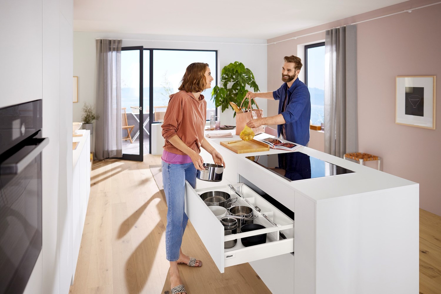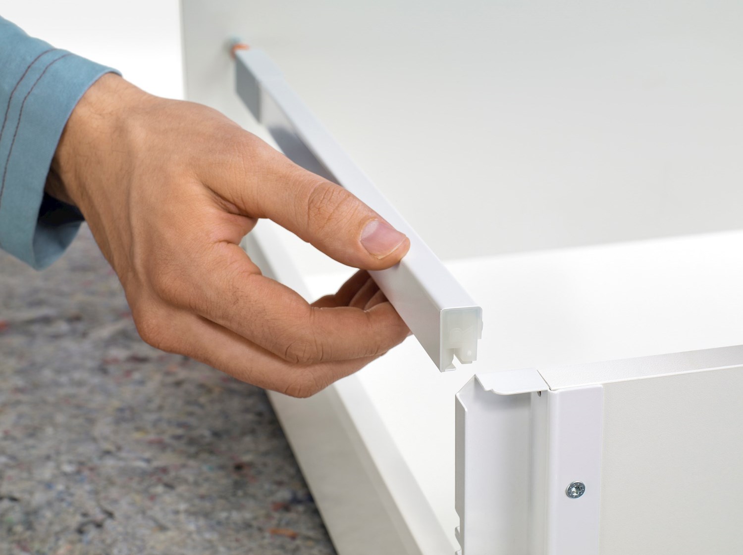 無論是搭配直桿還是加高側牆的抽屜,TANDEMBOX antaro 方桿金屬抽系列代表的是一種明朗、稜角分明的外觀風格。所有的零件在顏色上是互相匹配的,意在突出純粹的產品設計風格。豪華金屬方桿抽屜的滑軌同樣是搭配BLUMOTION 緩衝阻尼,抽屜拉開時,滑順平穩,抽屜關閉時,輕柔緩衝安靜。使用壽命長,經過十萬次以上的開合耐用測試。不僅外型時尚美觀,更具實用性。